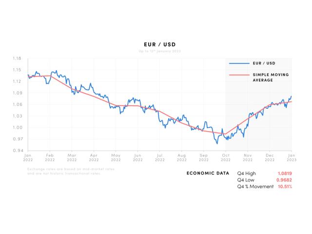 The euro began Q4 trying to recover from the lowest EUR/USD rate seen in 20 years and a sustained period below parity against the dollar that had run since mid-August. The war in Ukraine and the knock-on effects on gas and energy continued to dominate euro movement, with macro data being largely ignored. Eurozone inflation hit 10.7% YoY for October and the prospects of a shallow recession were looking slim. The ECB remained hawkish though, raising interest rates by 75-basis points in November and warning markets that there was much more to be done if they were to return to their target of 2% inflation. This was followed by a further 50-point hike in December, partnered with a forecast of up to three further hikes of the same size in the first half of 2023. While the ECB were the last of the G3 central banks to act, they now seemed to be the most aggressive. The reward was a return towards the 1.05 handle for EUR/USD, a level far more familiar in recent times. A warmer winter resulting in less energy usage has also lent strength to the common currency.